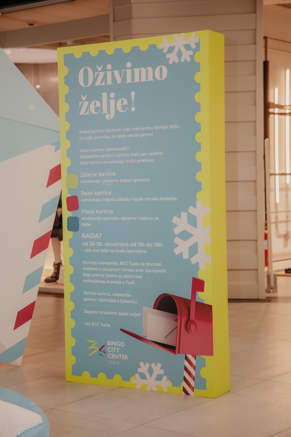 BCC Tuzla ove godine zatvara prazničnu sezonu aktivnostima koje spajaju radost darivanja i brigu za zajednicu. Pod nazivom Oživimo želje, od 20. do 30. decembra posjetioci centra imat će priliku sudjelovati u posebnoj akciji u sklopu koje će biti postavljen Zid želja.