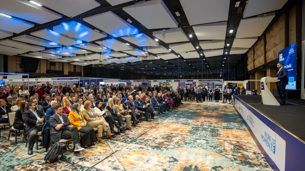 „UN Women ponosno podržava promoviranje rodne ravnopravnosti i osnaživanja žena na tržištu rada kroz uklanjanje sistemskih prepreka i poticanje inkluzivnih radnih mjesta. U Bosni i Hercegovini, žene u prosjeku posvete 6,5 sati dnevno neplaćenim poslovima brige i njege, što je skoro jednako obavljanju dva posla sa punim radnim vremenom. Osiguravanje jednakih mogućnosti za sve, uključujući žene i osobe sa invaliditetom, ključno je za održivi ekonomski razvoj i otpornost društva. Ovaj Sajam poslova dokaz je naše zajedničke predanosti stvaranju tržišta rada na kojem niko nije zapostavljen, naglašavajući važnost ravnopravnog sudjelovanja za sve”, izjavila je predstavnica UN Women Jo-Anne Bishop.